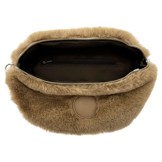 štýlová a moderná dámska ľadvinka s dvoma popruhmi, jeden hladký - imitácia kože, druhý chlpatý.