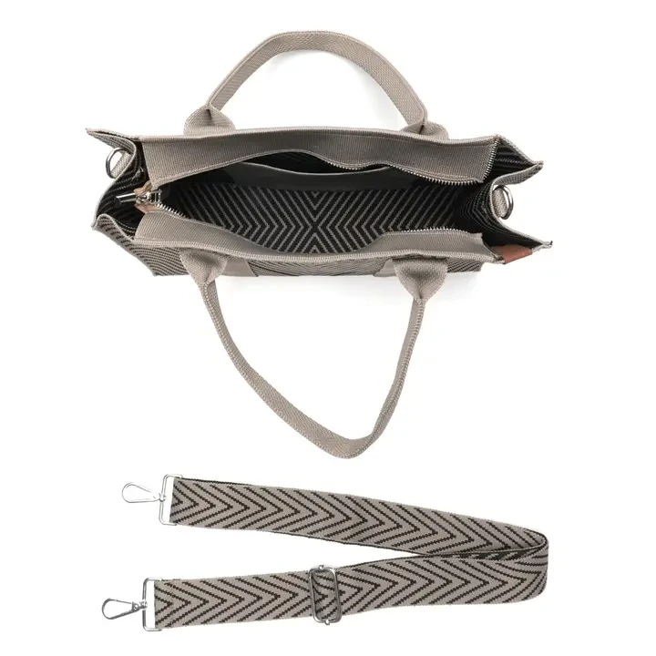 kabelka sa zapína na zips a má dve uši plus jeden dlhý popruh