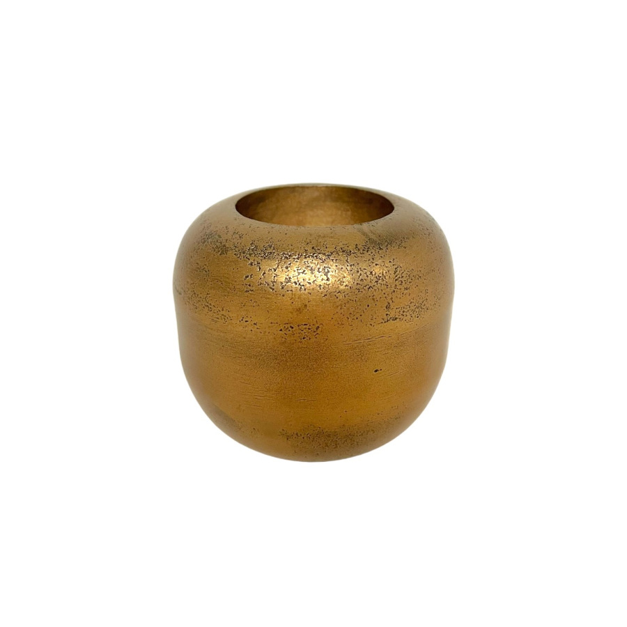 masívny kovový svietnik so zlatou patinou, na čajovú sviečku13 x 13 x 7
