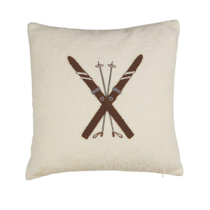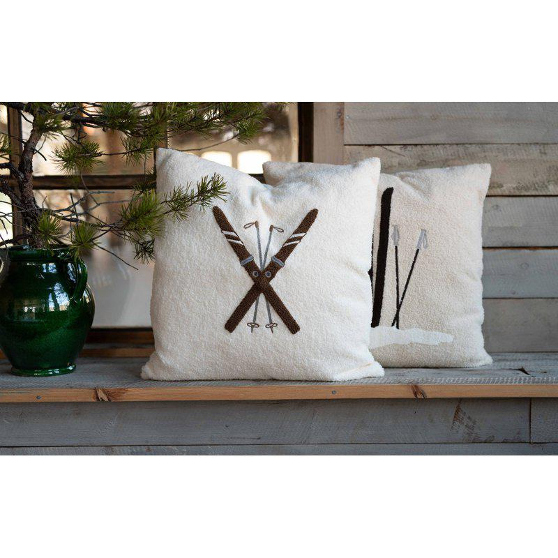 mäkučká zimná obliečka na vankúš s motívom lyží, jemná kožušinka