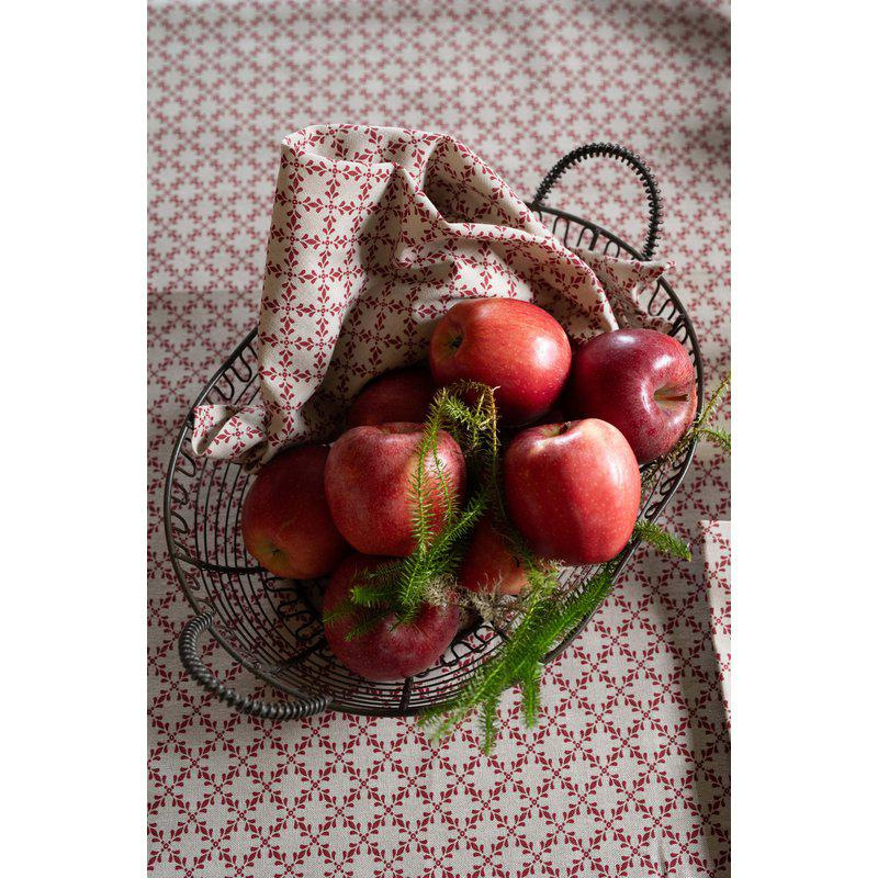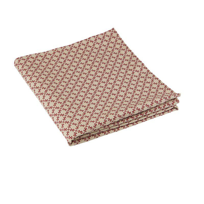 Väčší bavlnený obrus s decentným vzorom, kombinácia béžovej a tmavočervenej farby
