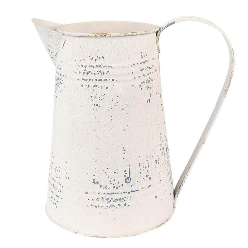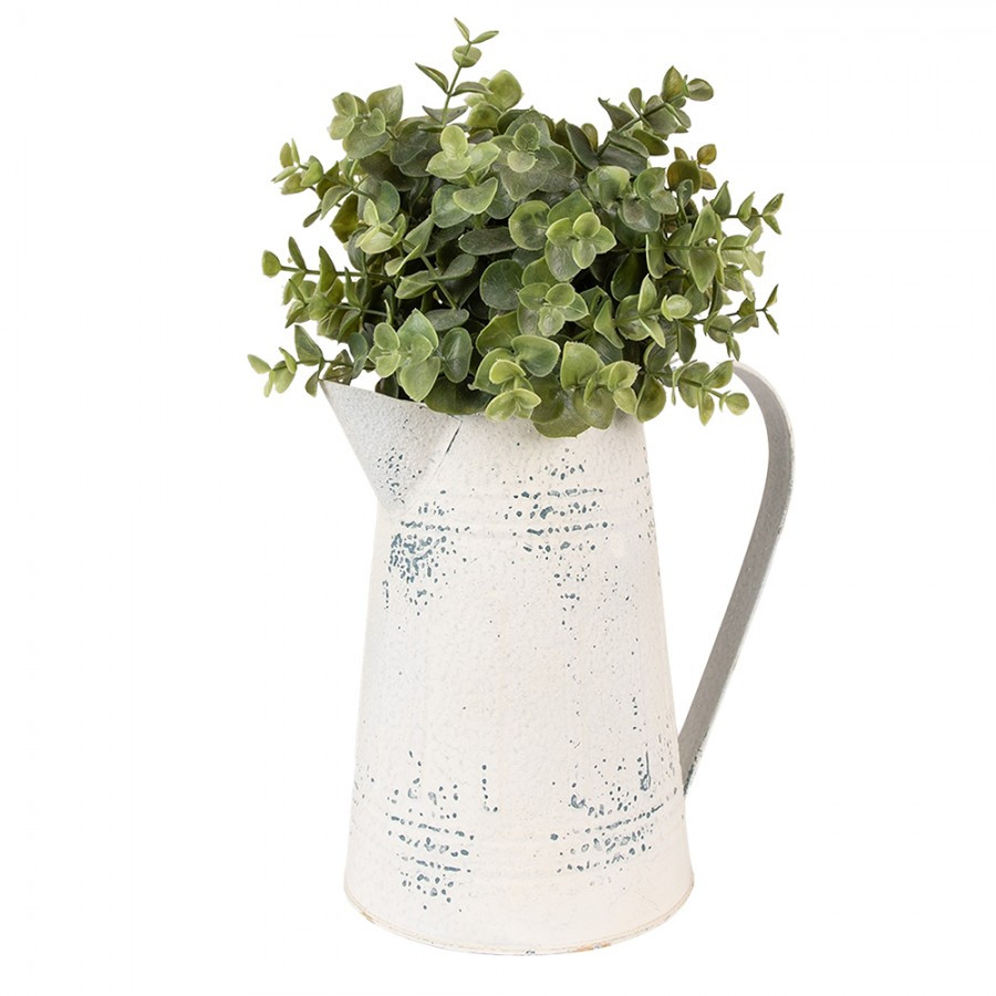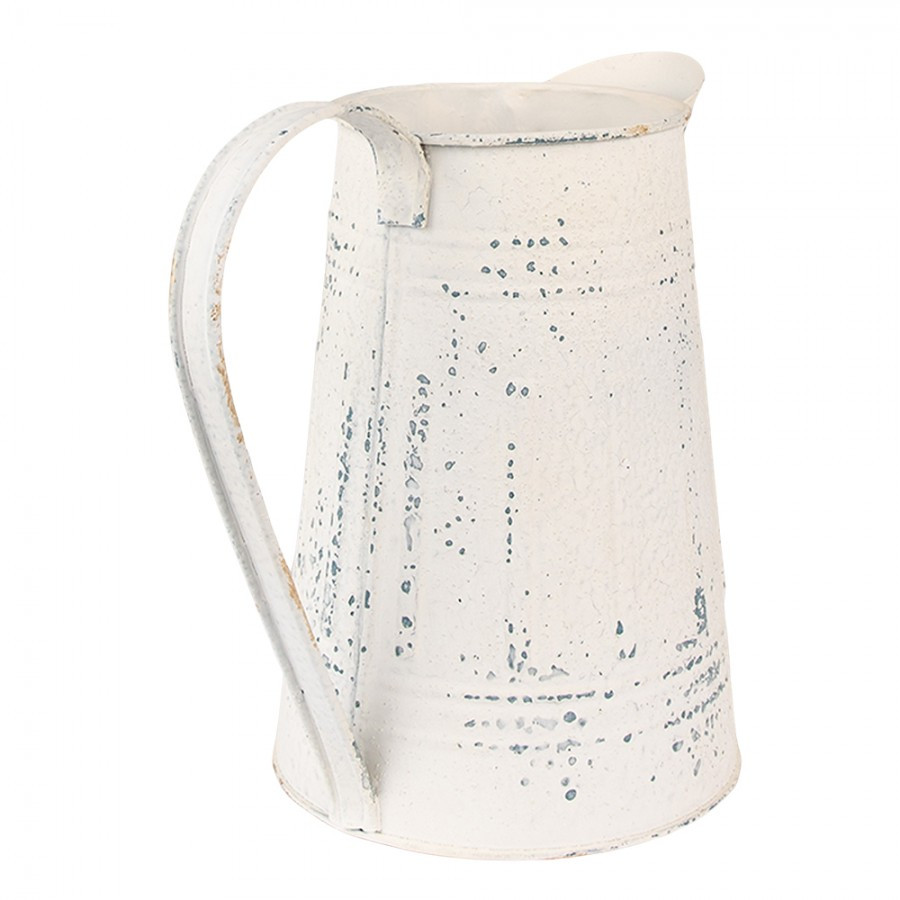 biely plechový krčah s uchom, patina, starý nedokonalý vzhľad