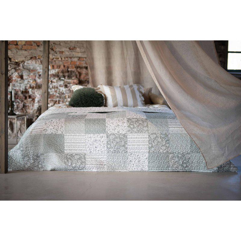 Prešívaný prehoz v patchworkovej technike s krásnym vzorom v jemných zelených tónoch.