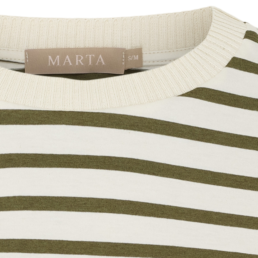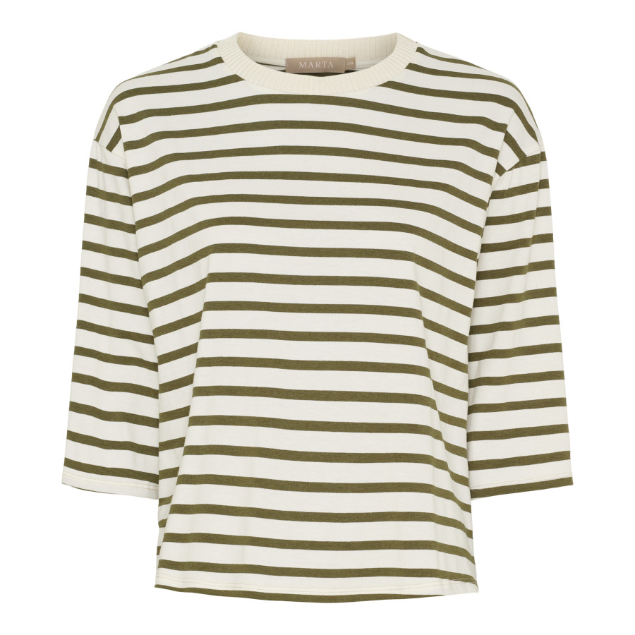 Základné a pohodlné pruhované tričko od Marty Du Château. Okrúhly výstrih s rebrovaným lemom a 3/4 priemerom. Ideálne kombinovať s džínsami Materiál: 50% bavlna, 25% viskóza, 20% polyester, 5% elastan