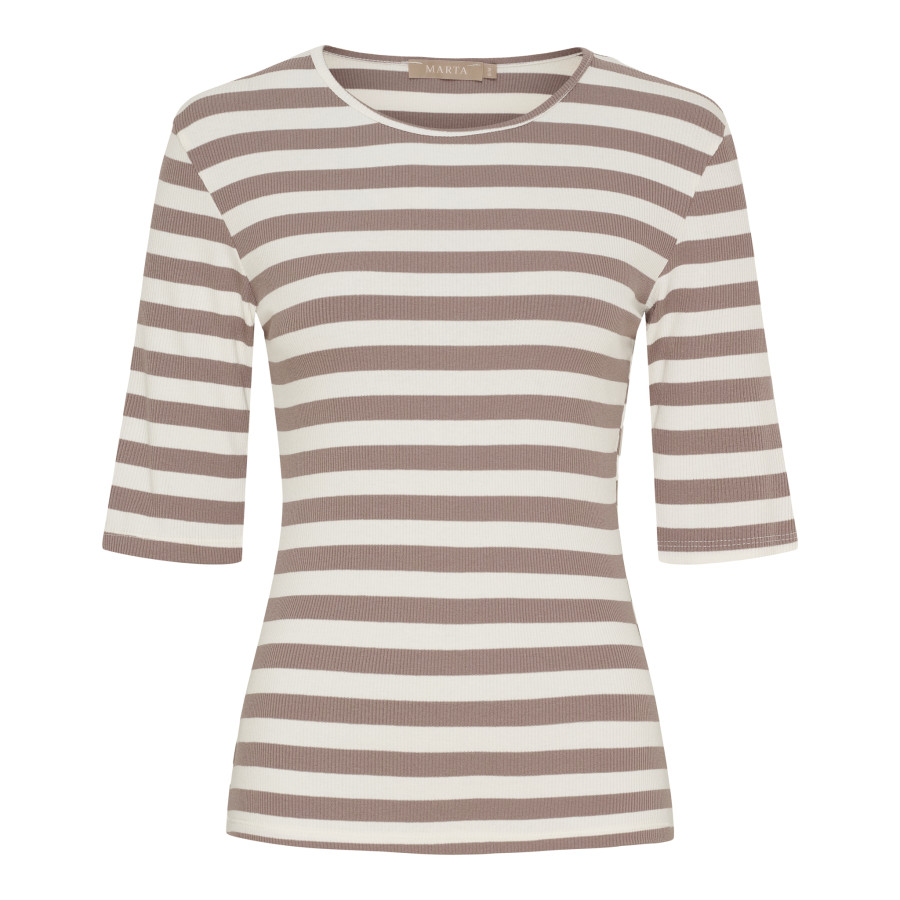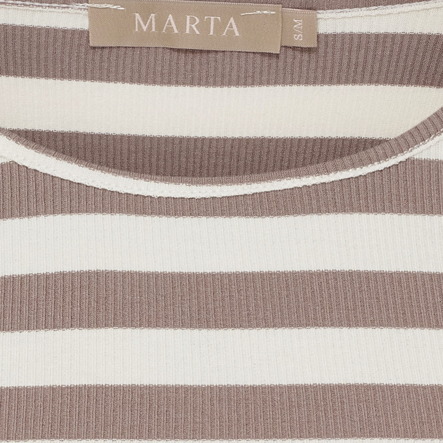 Základný pruhovaný top od Marta du Château s 3/4 rukávom. Ideálny na ležérny strih s džínsami, teniskami alebo iným oblečením.