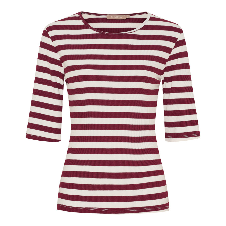 Základný pruhovaný top od Marta du Château s 3/4 rukávom. Ideálny na ležérny strih s džínsami, teniskami alebo iným oblečením.